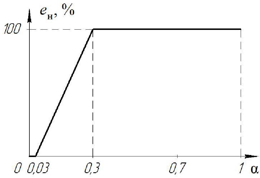 Управление ДВС осуществляется согласно зависимости частоты вращения коленчатого вала (рис. 3) от степени нажатия на педаль ускорения.