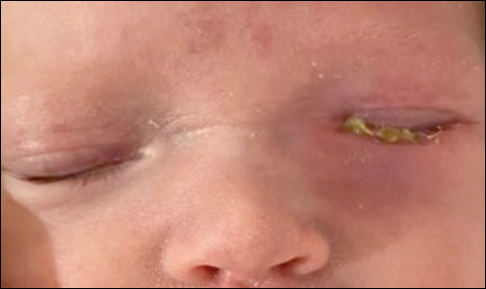 Рис. 3. Левостороннее дакриоцистоцеле в первые сутки жизни. / Fig. 3. Left-sided dacryocystocele on day 1 of life.