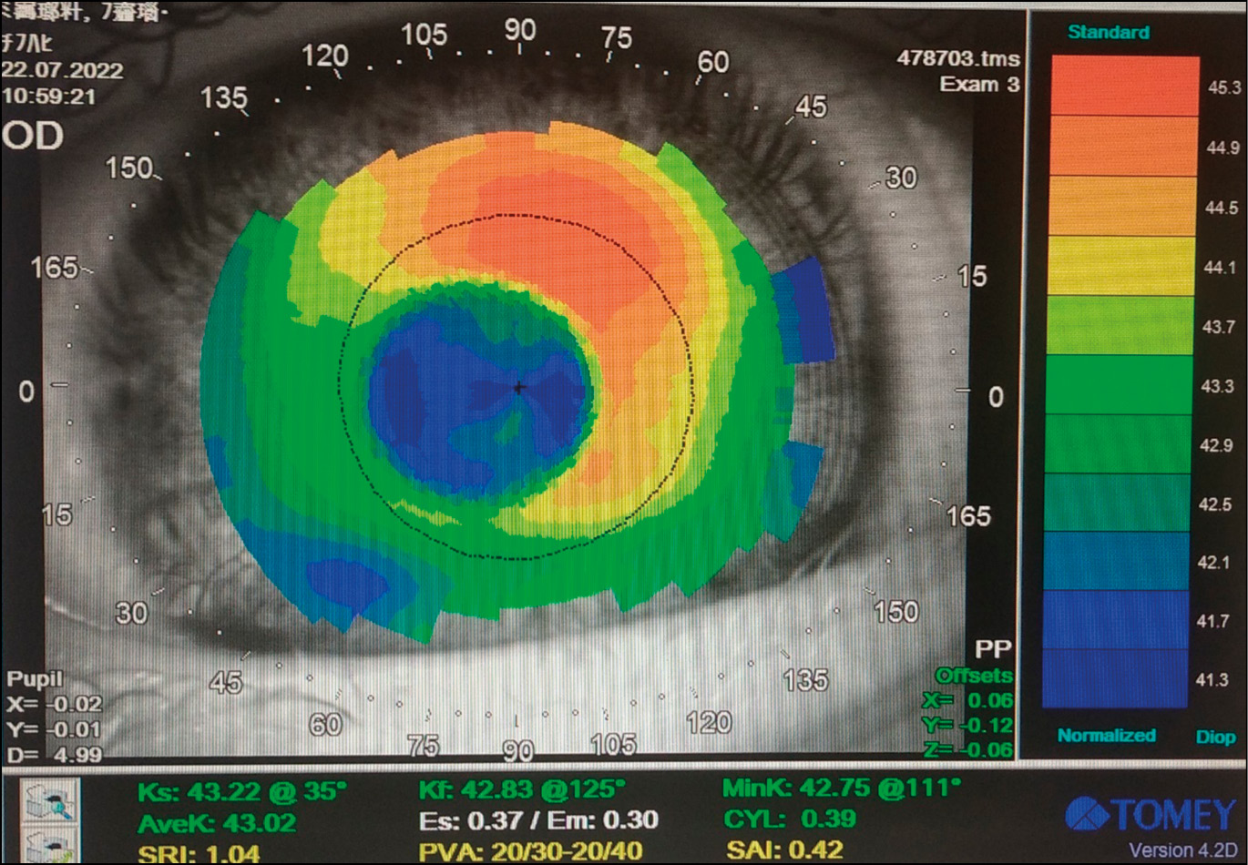 2. Fig. 1. Keratotopogram of the patient in bifocal soft contact lenses.