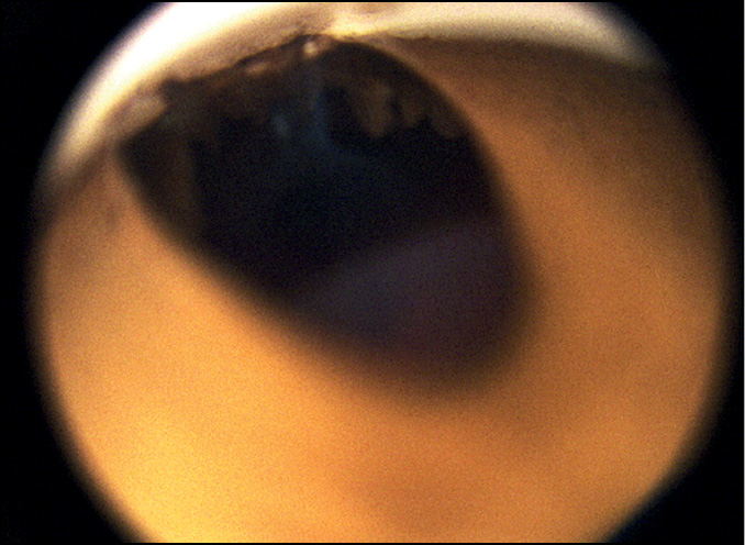 Рис. 4. Пласт пигментных наложений, прикрывших просвет внутренней фистулы.