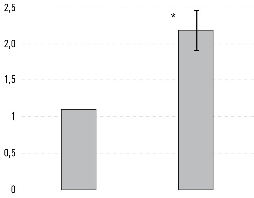 При отсутствии глаукомы средний индекс кератопатии составил 1,122±0,99. При глаукоме средний индекс кератопатии составил 2,206±1,5 (различие статистически достоверно, p=0,02) (рис. 3).