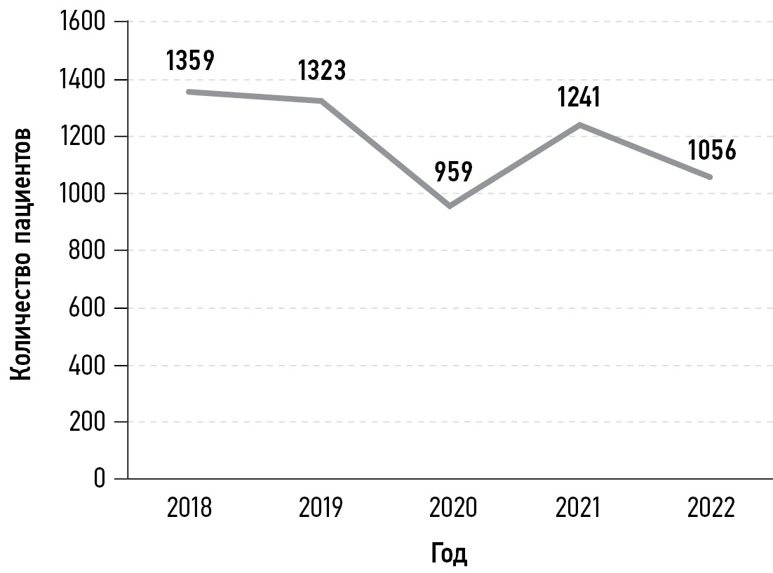 Рис. 2. Динамика общего количества пациентов с травмами органа зрения за 2018–2022 годы.