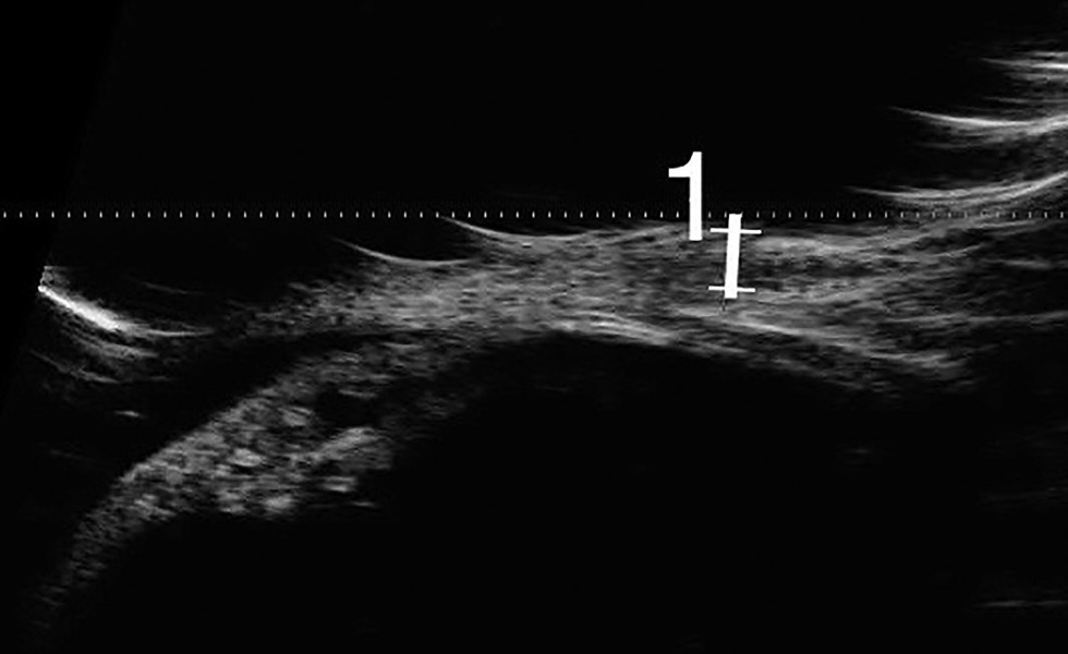 Fig. 3. Ultrasound biomicroscopy on Day 21 post-surgery; phase of the adhesive film resorption.