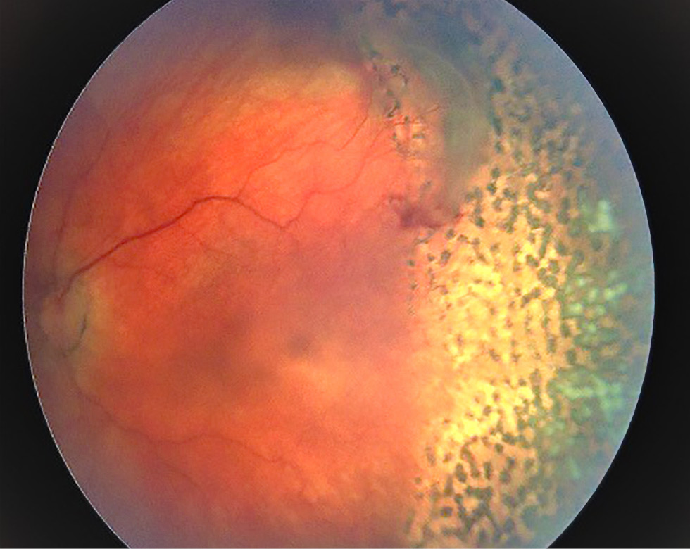 Рис. 4. Фотография глазного дна левого глаза пациента после лазерной коагуляции сетчатки: индуцированный регресс.