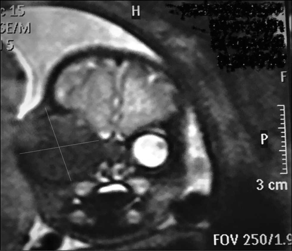 Fig. 5. MRI image: formation of the right orbit of the fetus (retinoblastoma?).