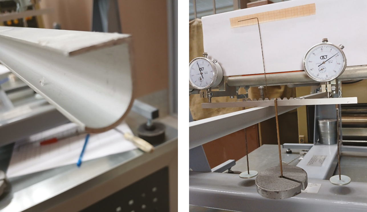 Проведены лабораторные исследования по определению центра кручения для балки с незамкнутым тонкостенным профилем прямолинейно-криволинейного очертания.