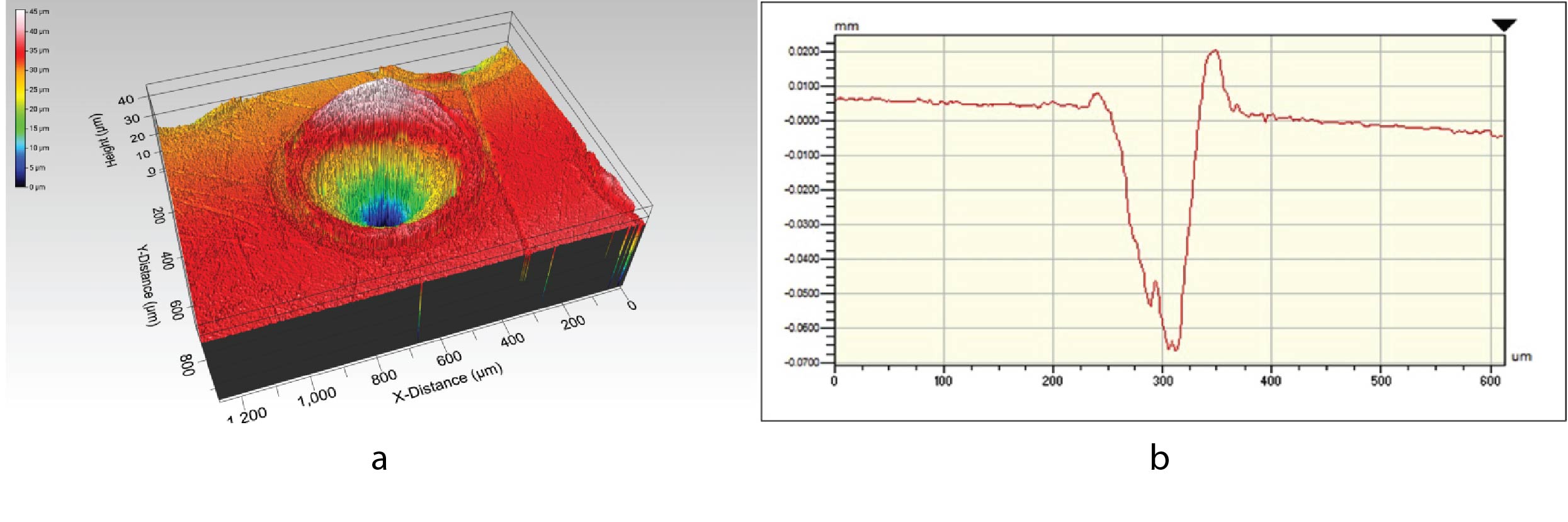 Fig. 2. Geometry of surface microtexture: a, 3D surface texture profile; b, microtexture height.