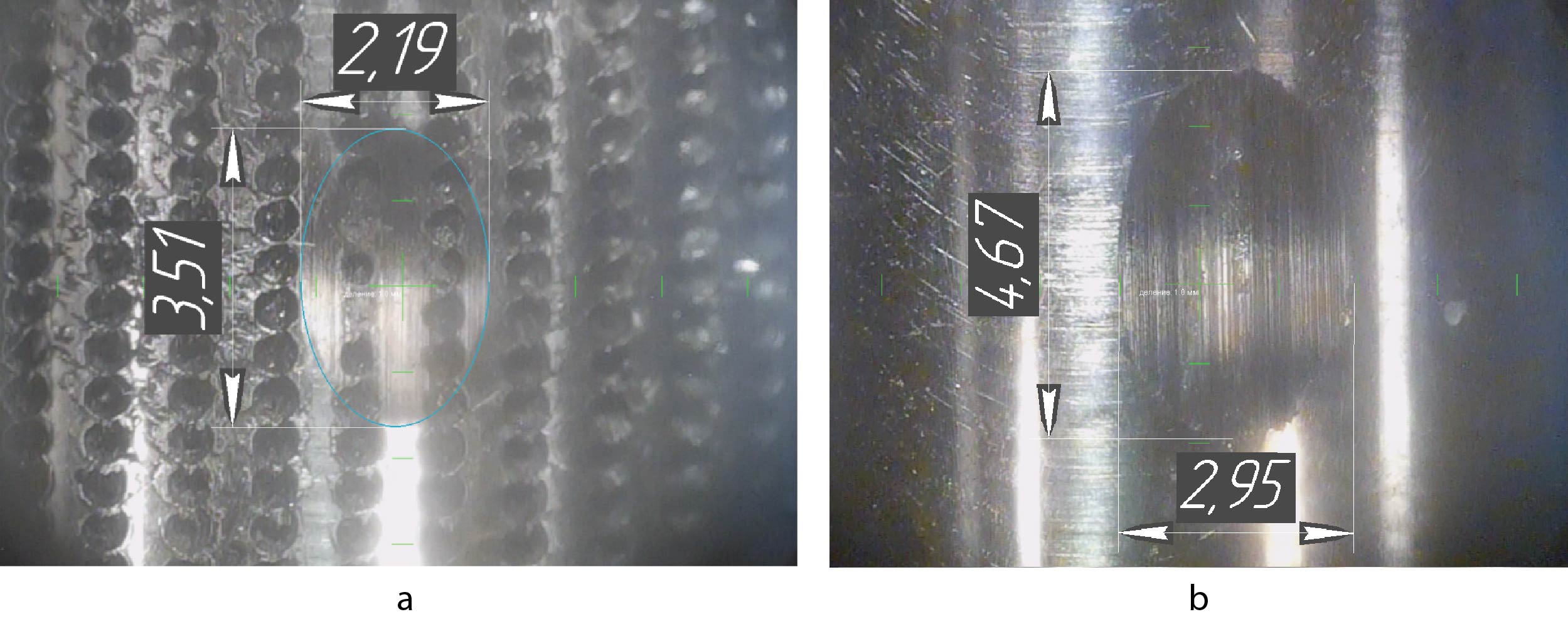 Рис. 3. Пятно контакта: a — текстурированная поверхность контакта; b — не текстурированная поверхность.
