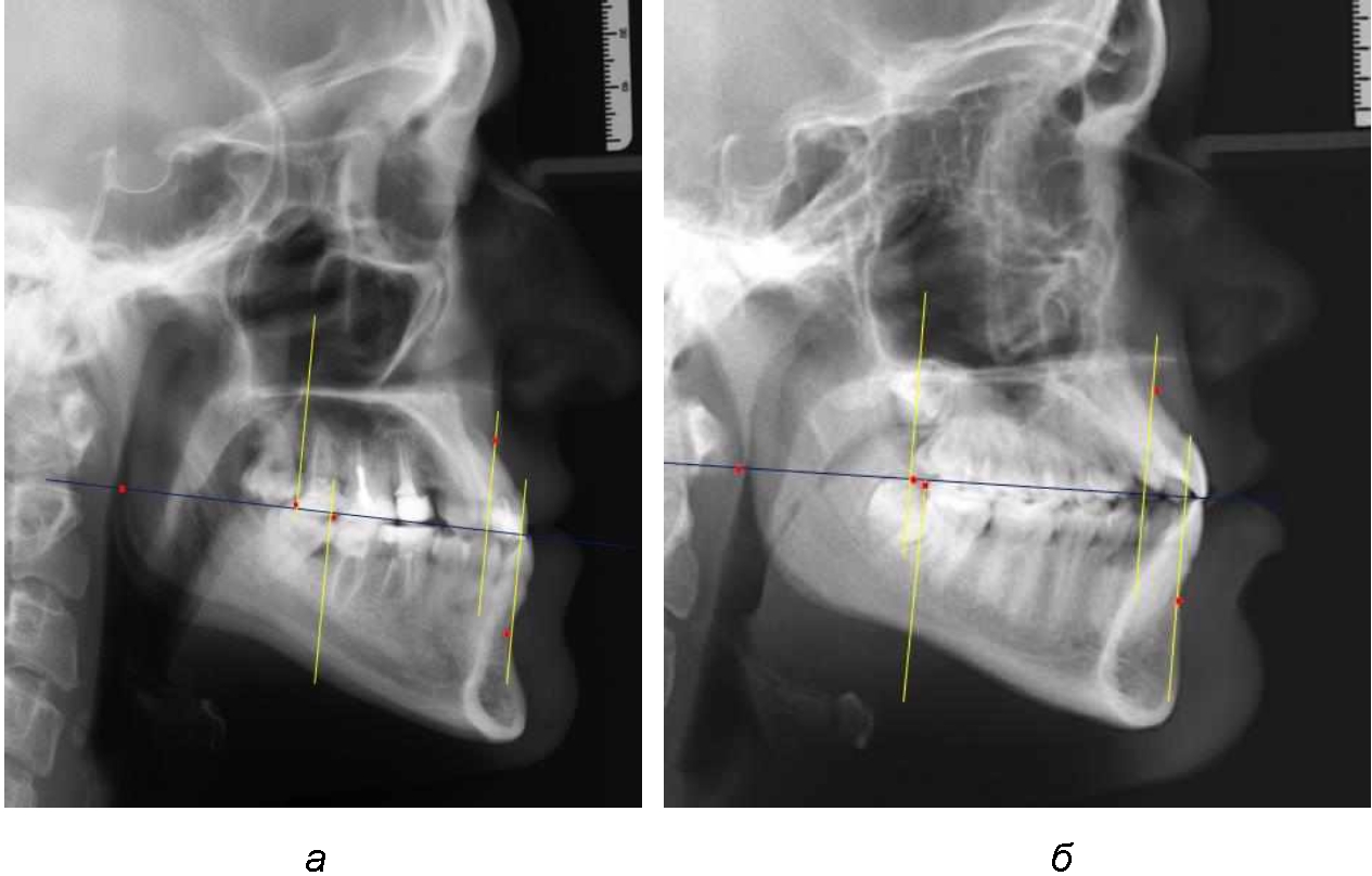 При ретроспективном исследовании оценивались телерентгенограммы 58 пациентов с физиологической окклюзией и 39 телерентгенограмм с аномалиями окклюзии в сагиттальном направлении.